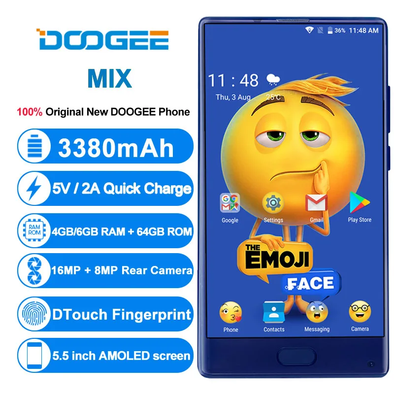 Product Name: Оригинальная американская версия DOOGEE MIX смартфон с двумя камерами 5,5 дюймов MTK Helio P25 Восьмиядерный 4 Гб + 64 Гб LTE смартфон 3380 мАч