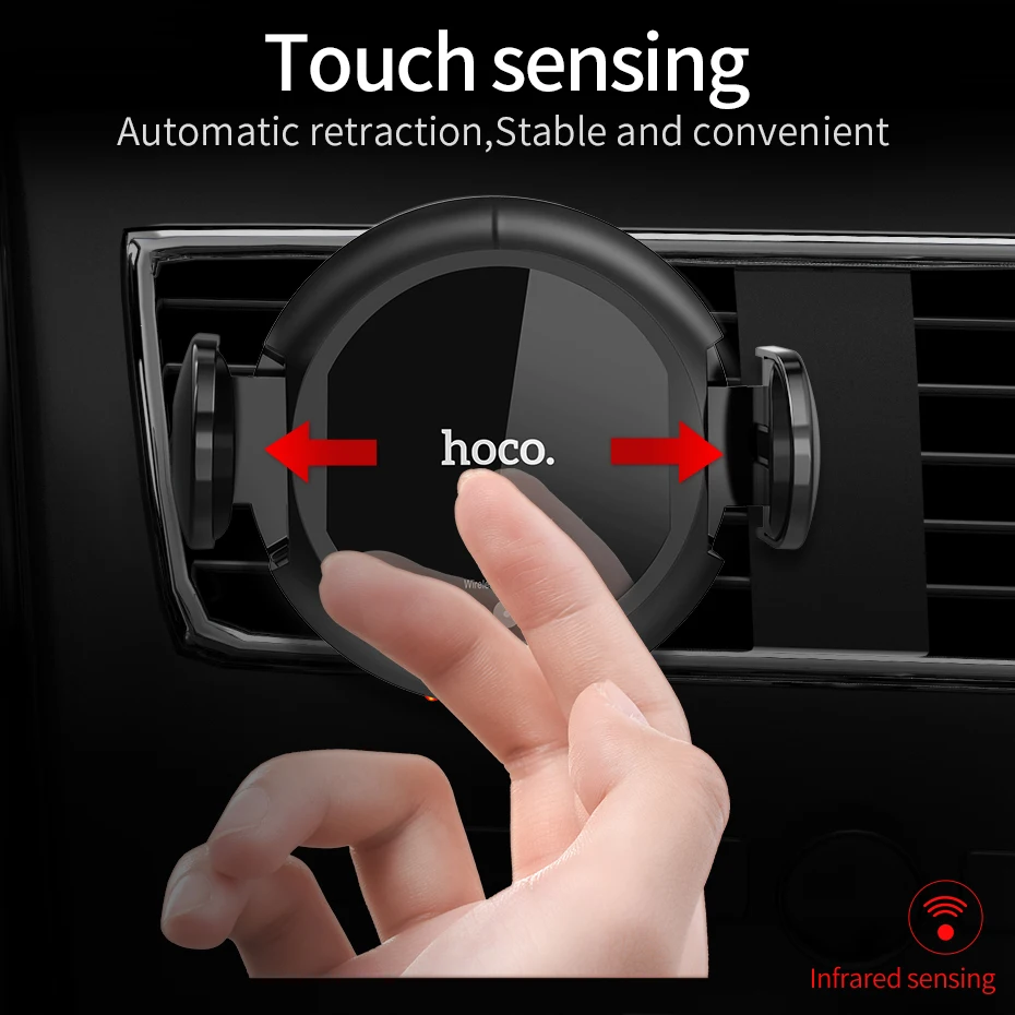 Product Name: HOCO Qi Беспроводное Автомобильное зарядное устройство Автоматическая Инфракрасная клипса вентиляционное отверстие автомобильный держател...