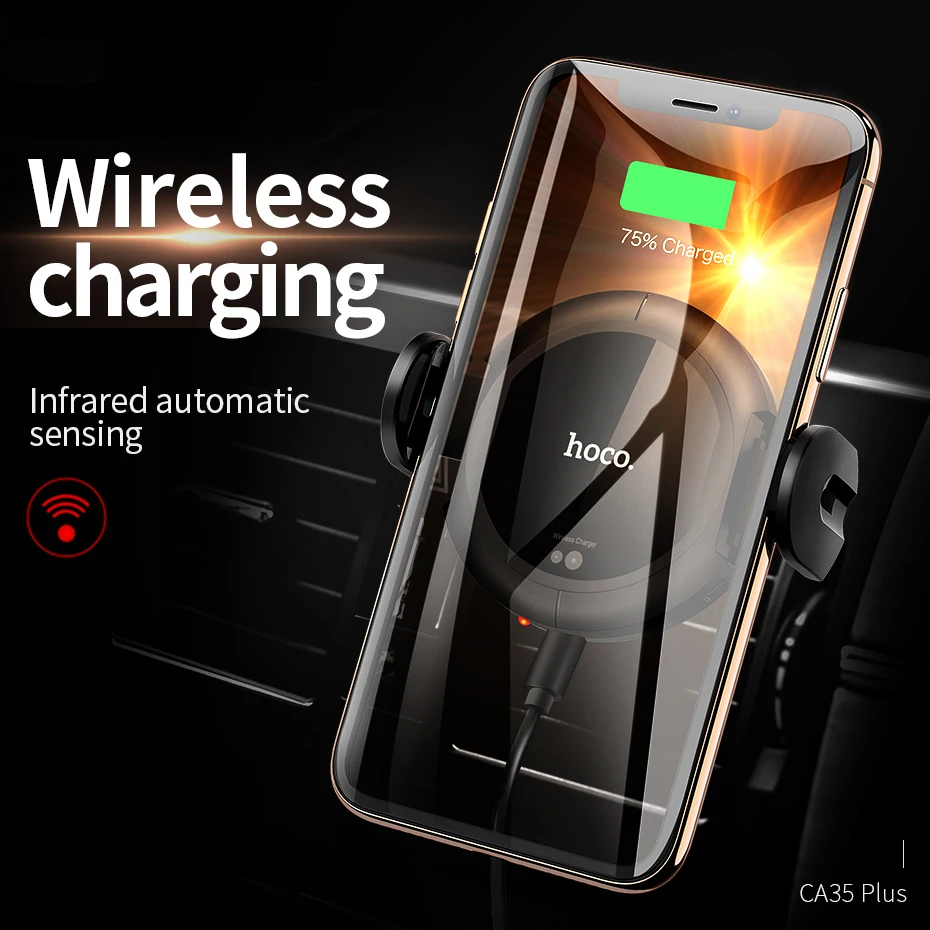 . [Скидка 35%] Купить HOCO Qi Беспроводное Автомобильное зарядное устройство Автоматическая Инфракрасная клипса вентиляционное отверстие автомобильный держател... Цена Дешево.