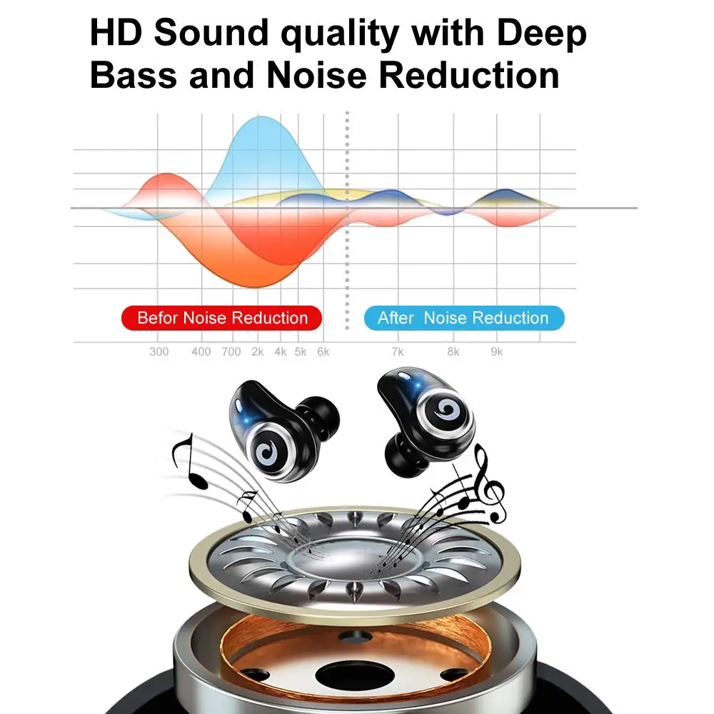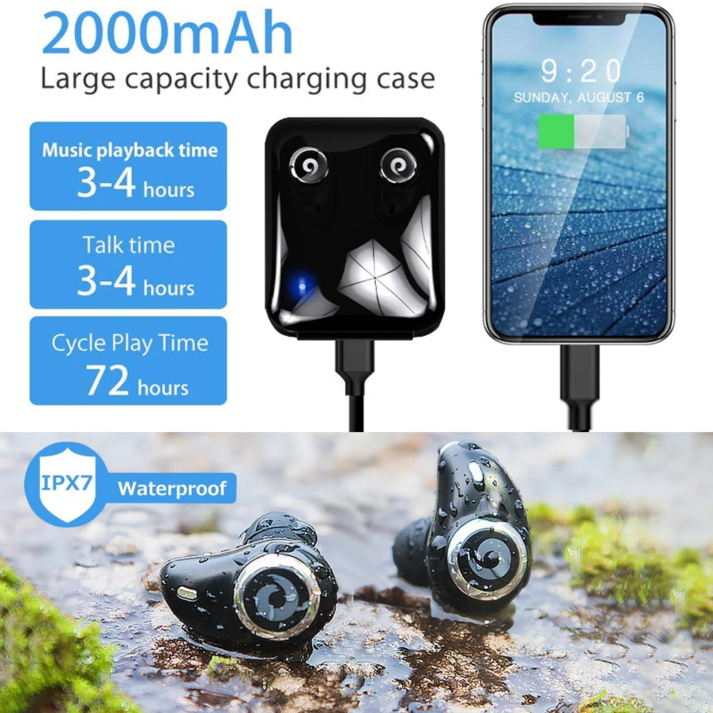 Product Name: Bluetooth 5,0, настоящие беспроводные наушники, IPX7, водонепроницаемая стерео гарнитура, 2000 мА ч, внешний аккумулятор, Зарядка телефона для iPhone 6s 7 ...