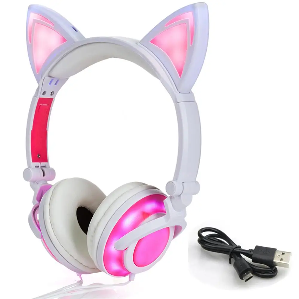 . [Скидка 10%] Купить LIMSON Проводные складывающиеся наушники животные кошка Наушники светодиодный светящийся подарок для детей девочек и мальчиков Продажа Дешево.