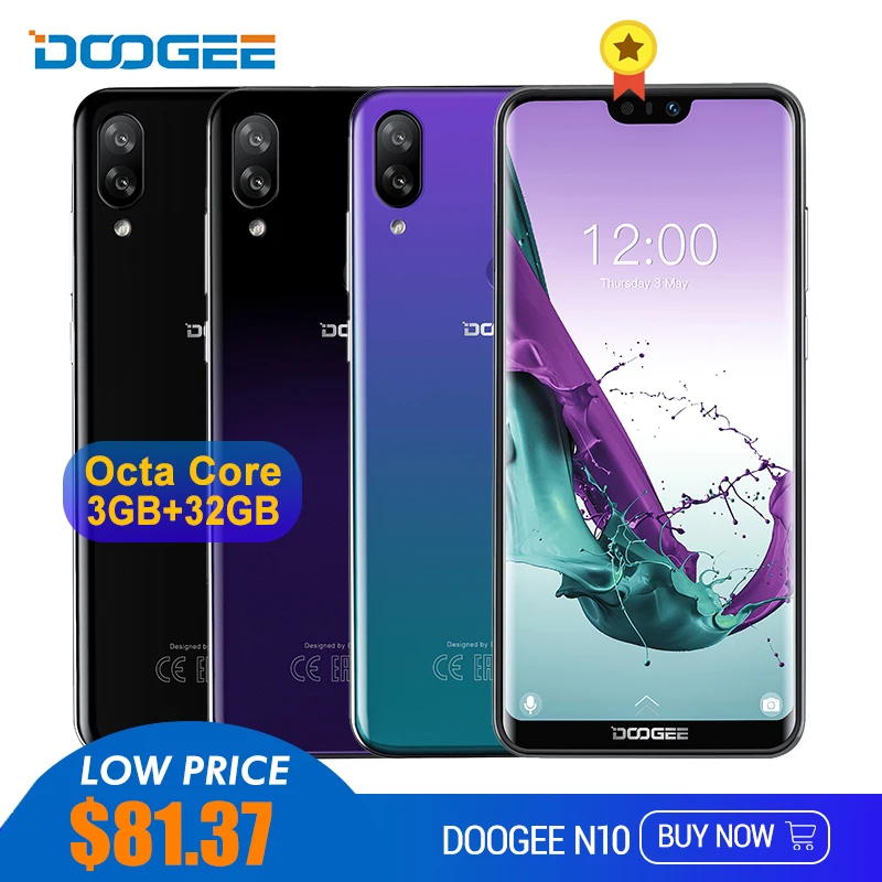 Product Name: DOOGEE N10 мобильный телефон Восьмиядерный 3 ГБ ОЗУ 32 Гб ПЗУ 5,84 дюймов FHD + 199 дисплей 16 МП фронтальная камера 3360 мАч Android 8,1 4G LTE 2019
