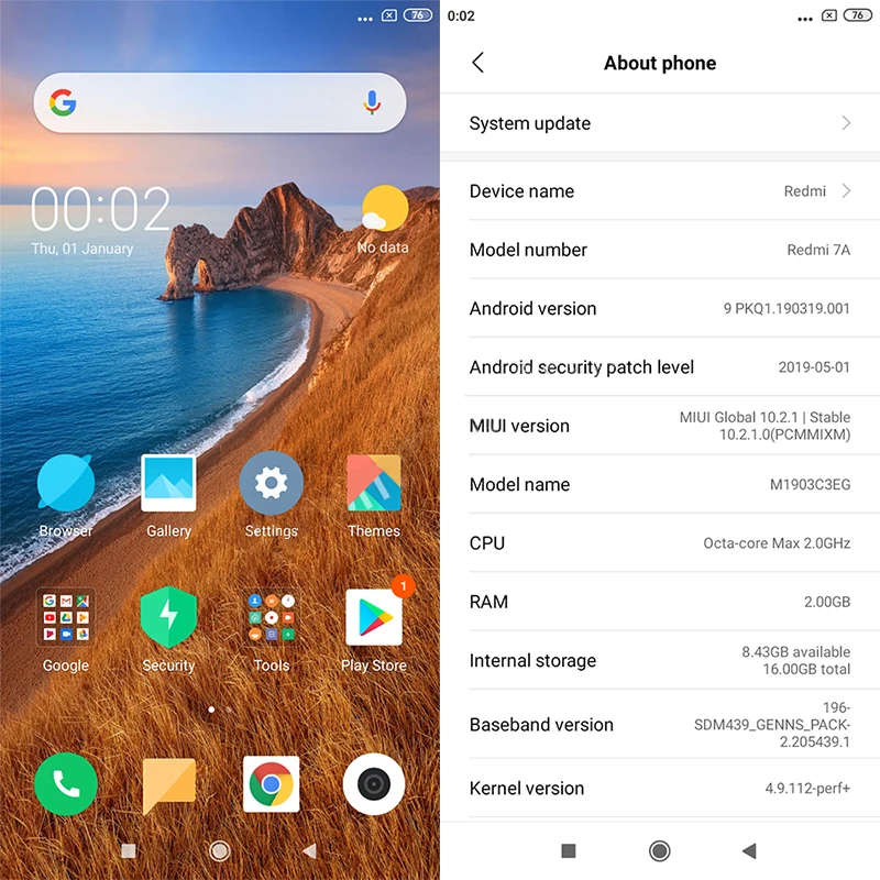 Product Name: Смартфон Xiaomi Redmi 7A 7 A, 2 Гб, 32 ГБ, 4000 мА ч, долгий срок службы батареи, разблокировка лица AI, Восьмиядерный экран 5,45 дюйма