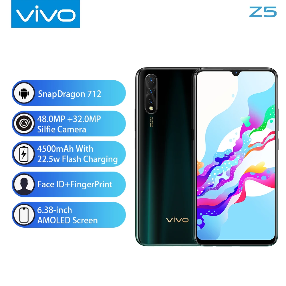 . [Скидка 20%] Купить Vivo Z5 поддержка глобальной rom Google Paly 6G 128G мобильный телефон 48MP + 32MP 4 камеры лицо + сканер отпечатков пальцев 1080*2340 полный экран Цена Дешево.
