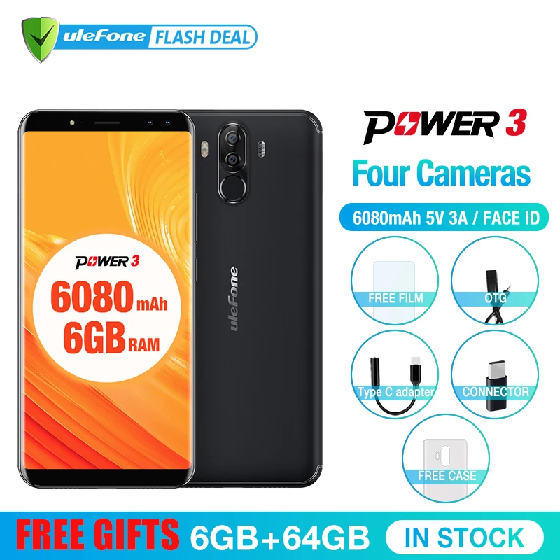 . [Скидка 36%] Купить Оригинал Ulefone Power 3 телефон смартфон телефоны смартфоны 6.0 "FHD + Экран 6080 мАч большая батарея смартфон Android 7.1 Face ID Touch ID четыре Камер 4G мобильный... Цена Дешево.