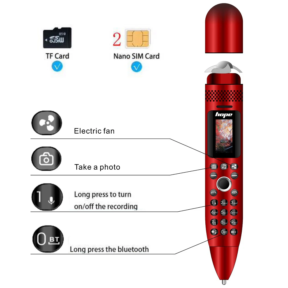 Product Name: Мини симпатичная ручка для мобильного телефона с электрическим вентилятором 2G GSM волшебный голос две sim камеры MP3 BT Dialer записывающая ручка с ...