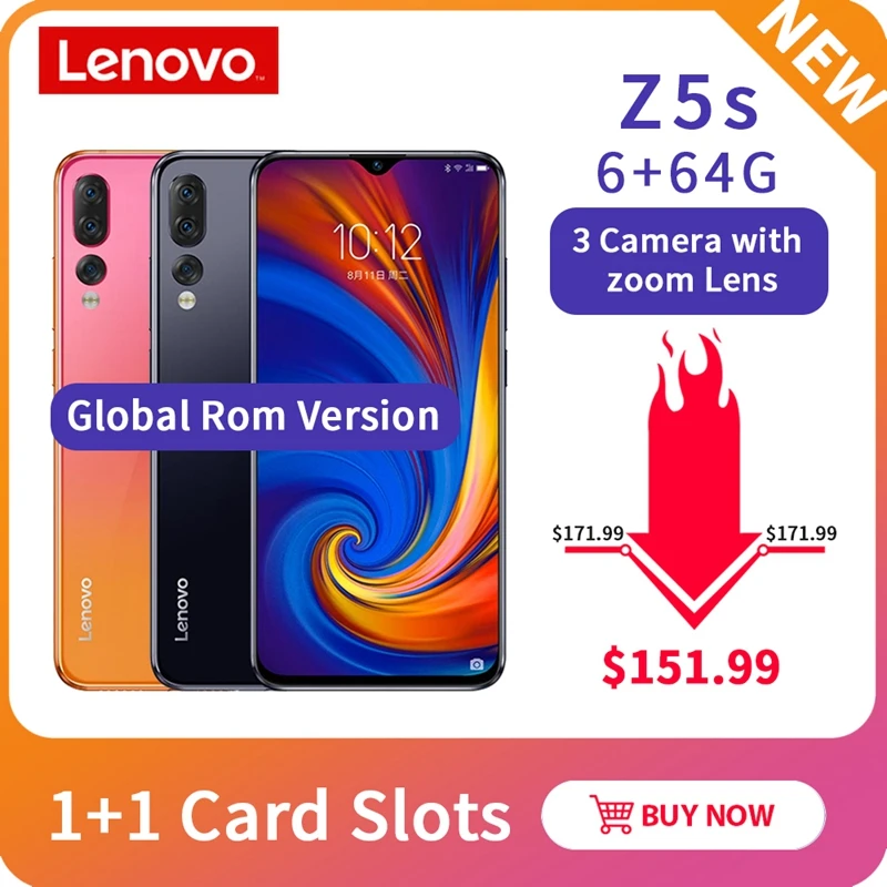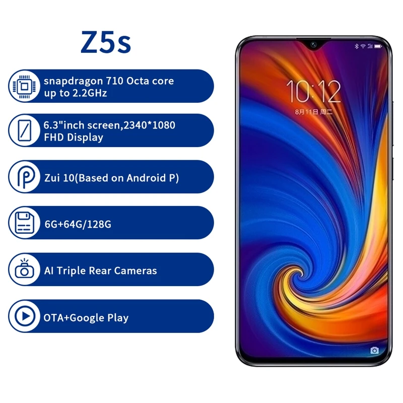 . [Скидка 0%] Купить Lenovo Z5S 4G 6 ГБ 64 Гб 128G глобальная Встроенная память 6,3 дюймовый смартфон Z5 s тройной задней Камера мобильных телефона Snapdragon 710 Чехол для мобильн... Цена Дешево.
