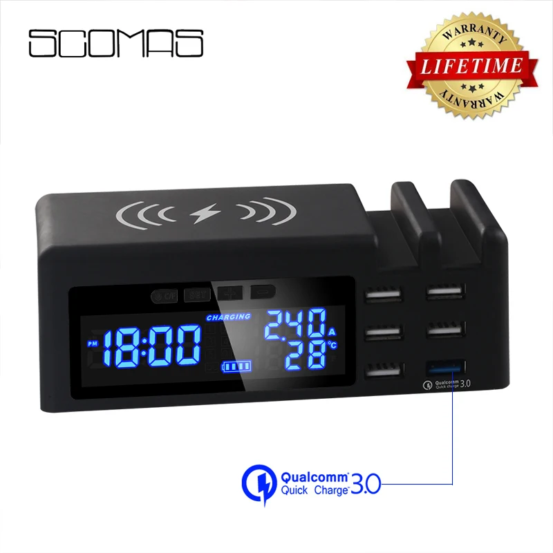 Product Name: SCOMAS Qi Беспроводное зарядное устройство для телефона Быстрая зарядка 48 Вт 6 портов адаптер мульти Быстрый USB док станция для зарядки для iphone п...