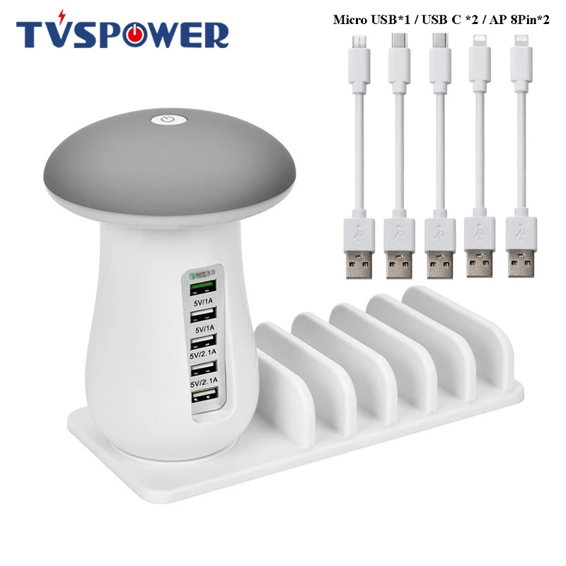 Special Offer Мульти Порты и разъёмы Quick Зарядное устройство 3,0 лампа в виде гриба QC3.0 Быстрая зарядка для смартфонов + светодиодная лампа + USB зарядка док с... Discount 31% Today!
