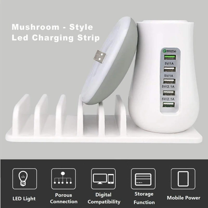 . [Скидка 31%] Купить Мульти Порты и разъёмы Quick Зарядное устройство 3,0 лампа в виде гриба QC3.0 Быстрая зарядка для смартфонов + светодиодная лампа + USB зарядка док с... Продажа Дешево.