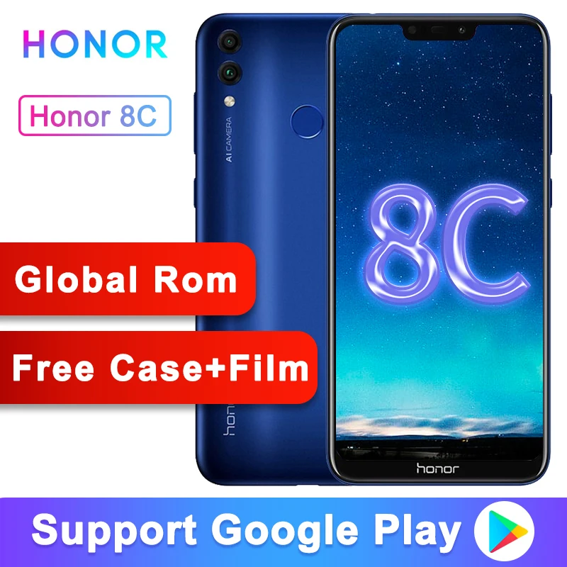 . [Скидка 0%] Купить Оригинал Honor 8C Global Rom, 3 слота, Face ID, 6,26 дюймов, Восьмиядерный процессор Snapdragon 632, 13 МП, двойная камера заднего вида, 4000 мАч, мобильный телефон Продажа Дешево.