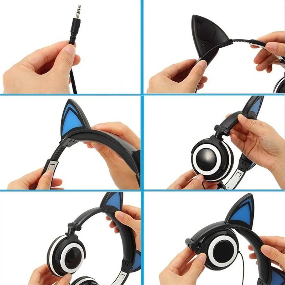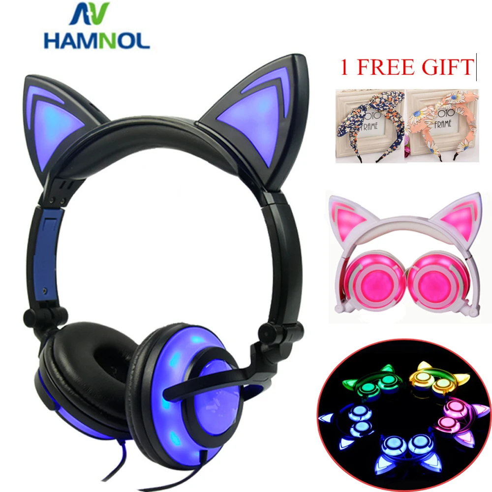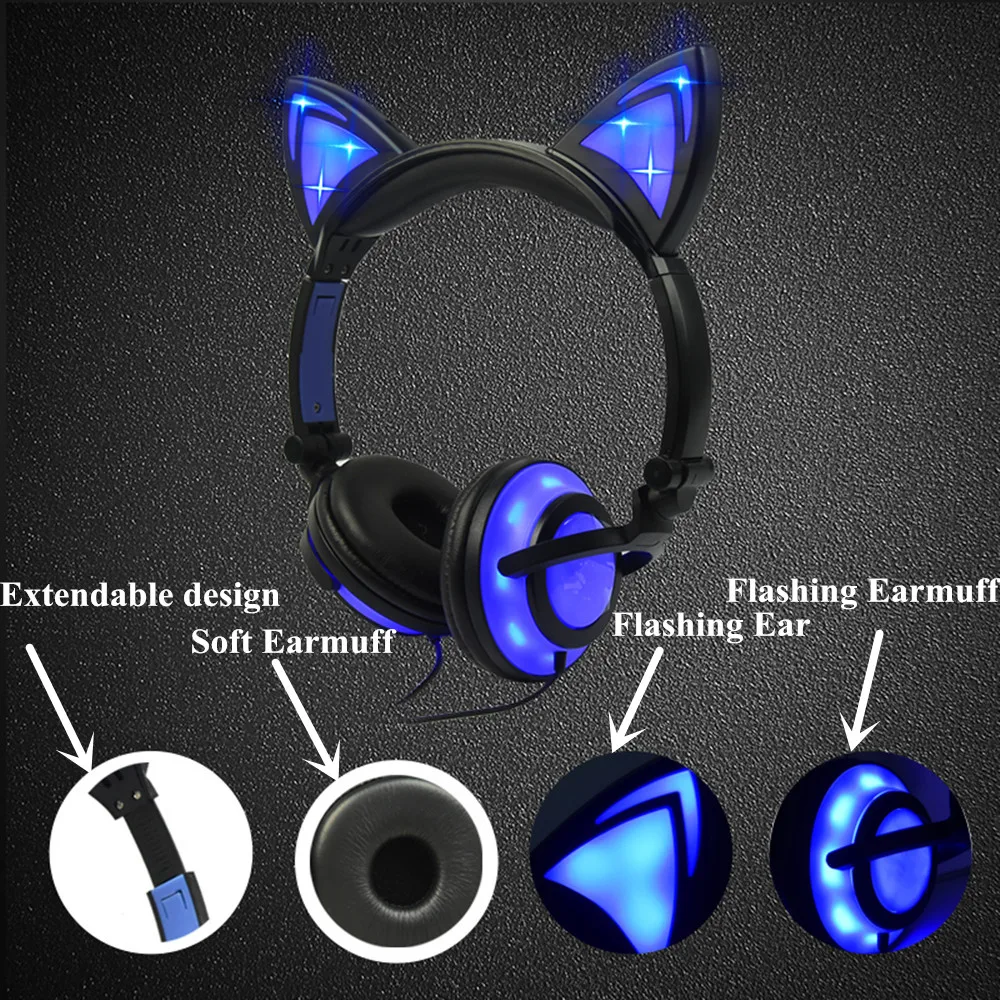 . [Скидка 30%] Купить Светящиеся светильник кошачьи наушники стерео наушники "Кошка" 3,5 мм Проводная игровая гарнитура для ПК геймера мобильный телефон SP4 Новый ... Продажа Дешево.