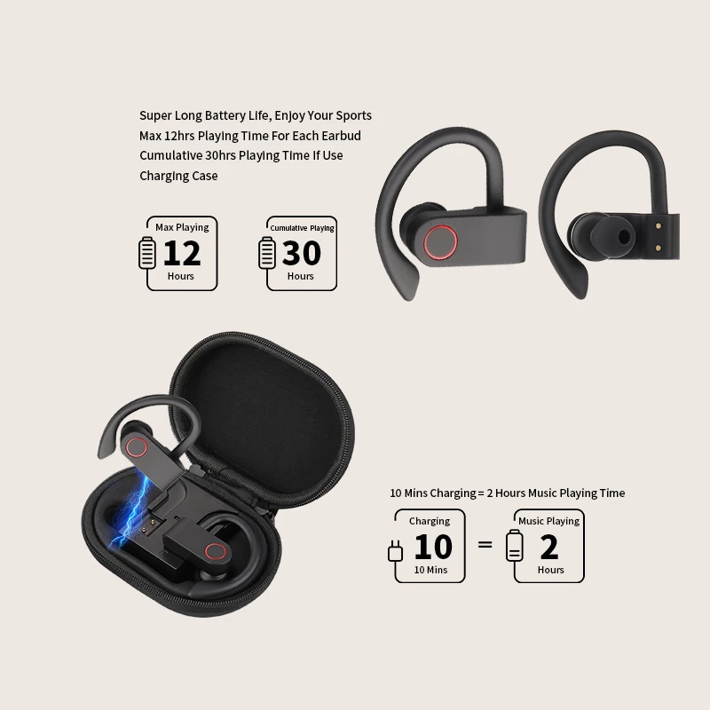 [Скидка 38%] Купить Беспроводные спортивные наушники TWS Bluetooth 5,0 наушники Заушное крепление, для бега шумоподавление стерео наушники с микрофоном IPX4 водонепрон... Цена Дешево.