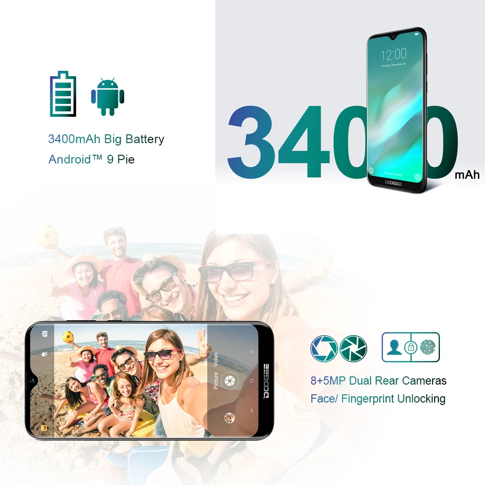 Product Name: DOOGEE Y8, Android 9,0, 4G LTE, 6,1 дюймов, 199, капля воды, LTPS экран, смартфон MTK6739, 3 Гб ОЗУ, 32 Гб ПЗУ, 3400 мАч, две sim карты, МП