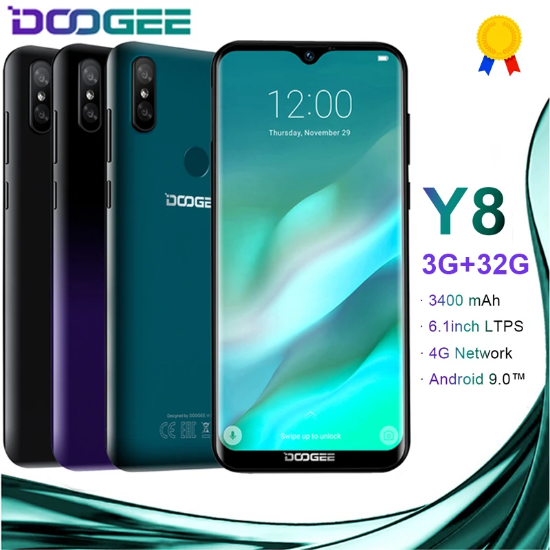 . [Скидка 11%] Купить DOOGEE Y8, Android 9,0, 4G LTE, 6,1 дюймов, 199, капля воды, LTPS экран, смартфон MTK6739, 3 Гб ОЗУ, 32 Гб ПЗУ, 3400 мАч, две sim карты, МП Продажа Дешево.